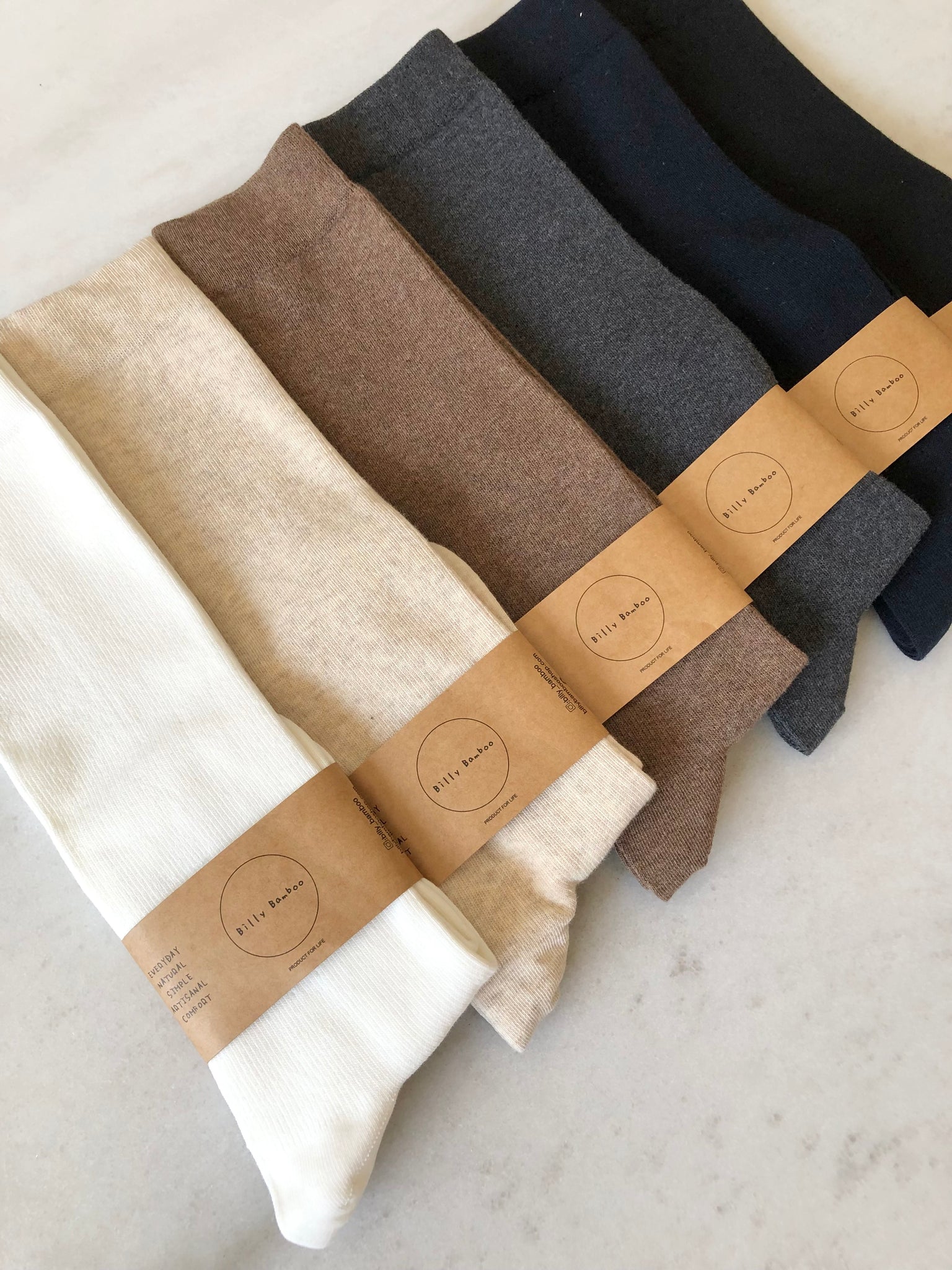 Our Smart Knee-High Socks are crafted from a luxurious combed cotton-blend with just the right touch of stretch. They slip on with ease, hold their shape beautifully, and feel as good as they look.