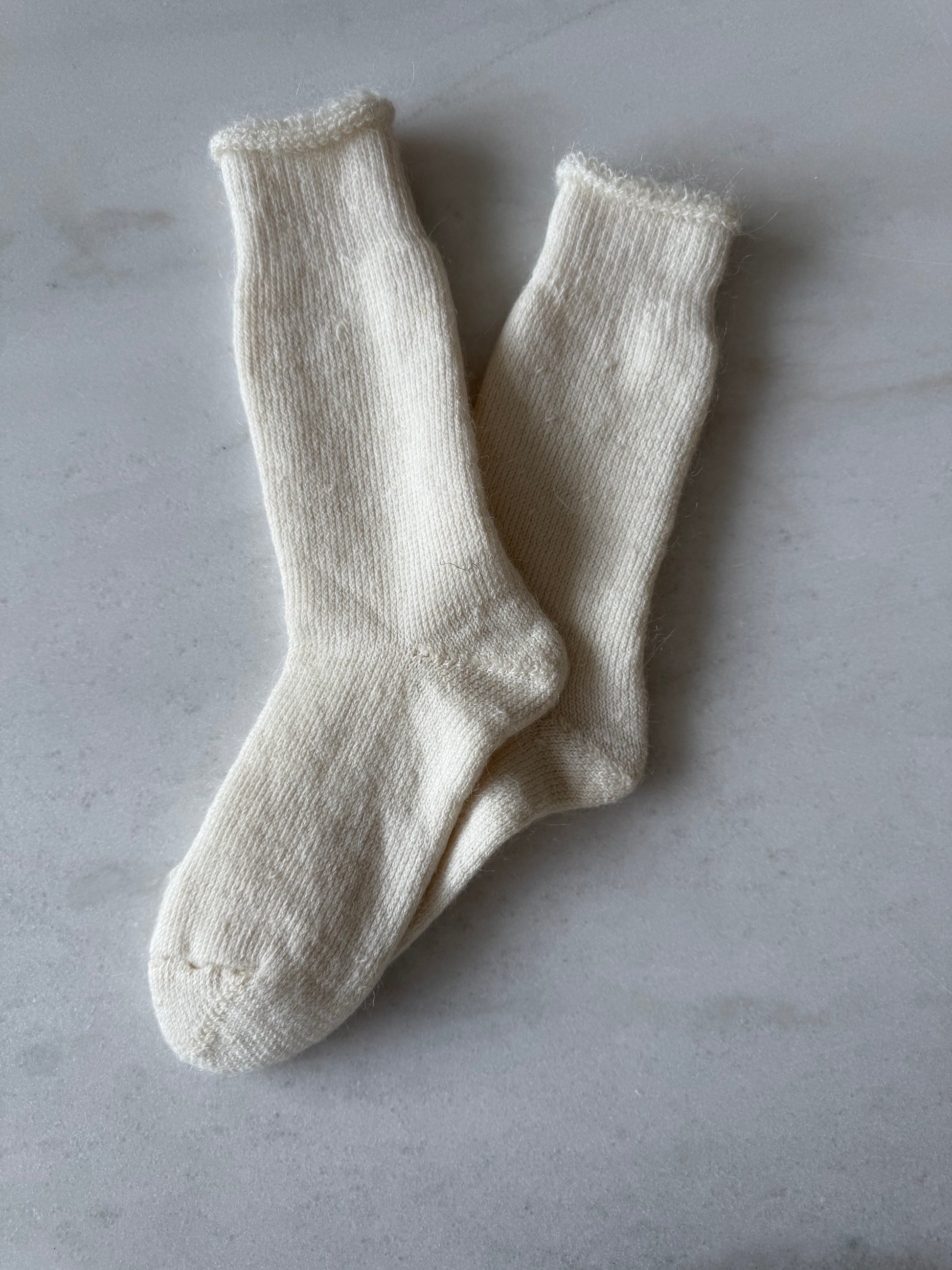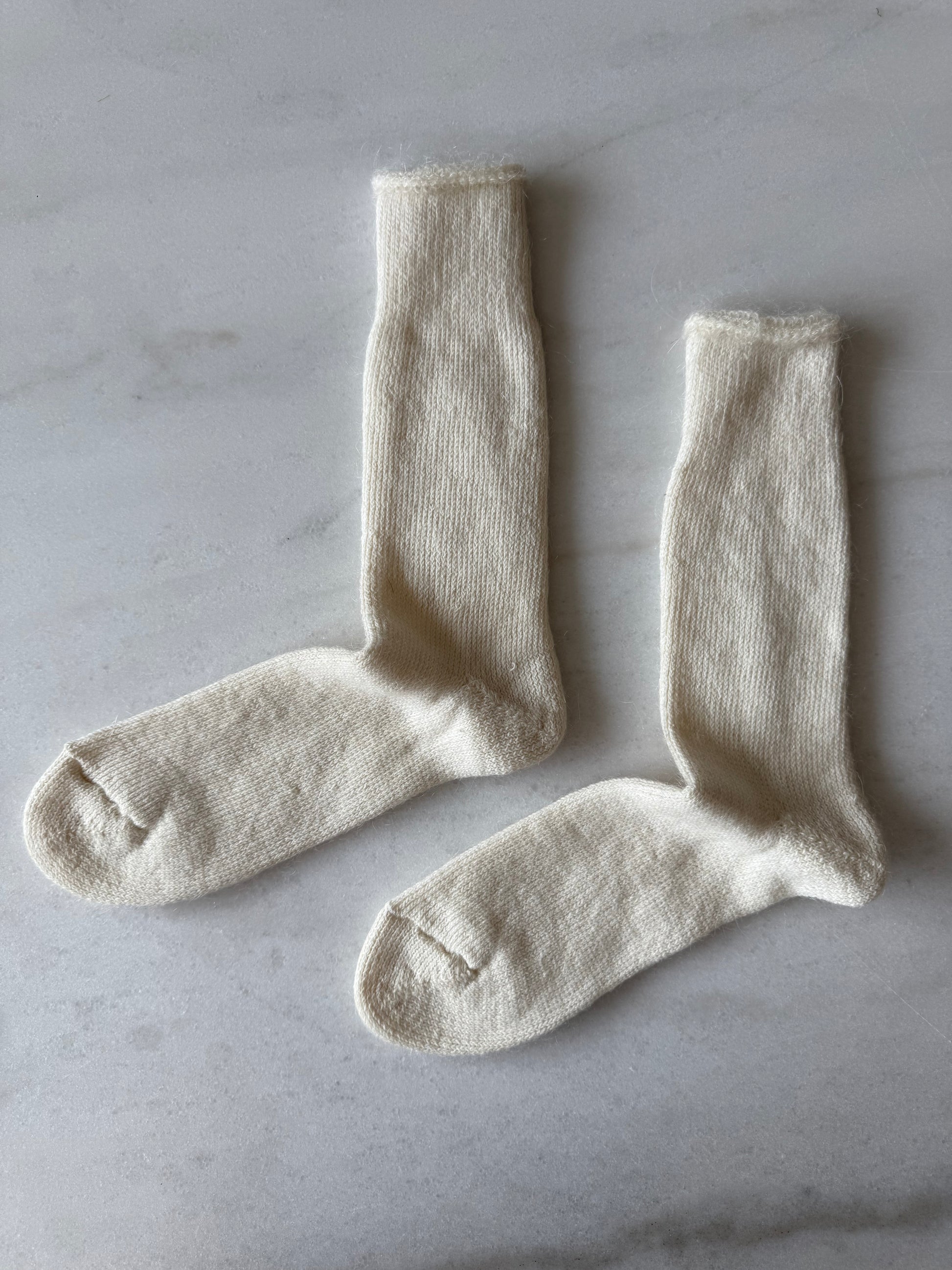 Mohair’s long fibres are naturally strong and resilient, helping these socks hold their softness and shape wear after wear. -