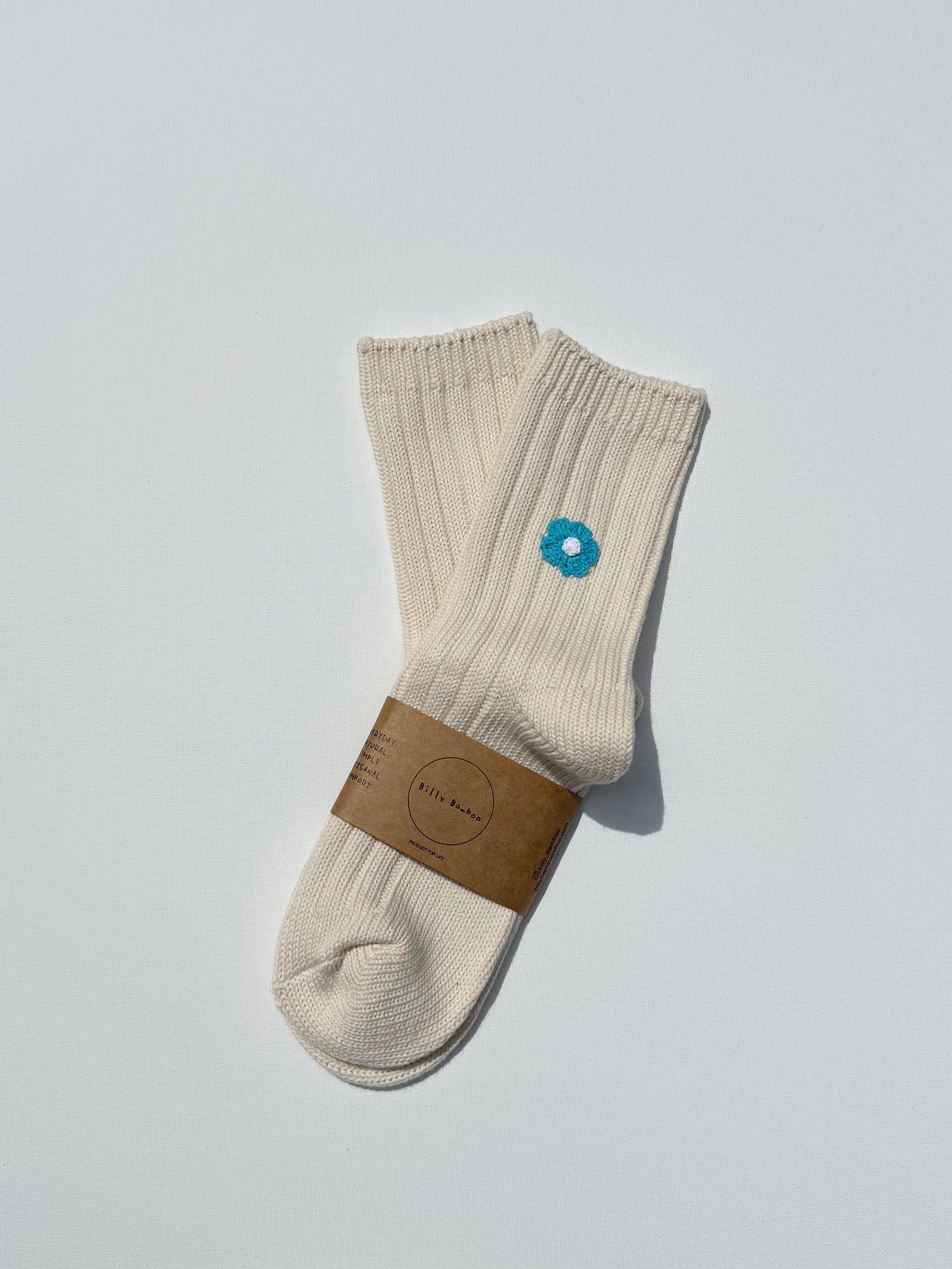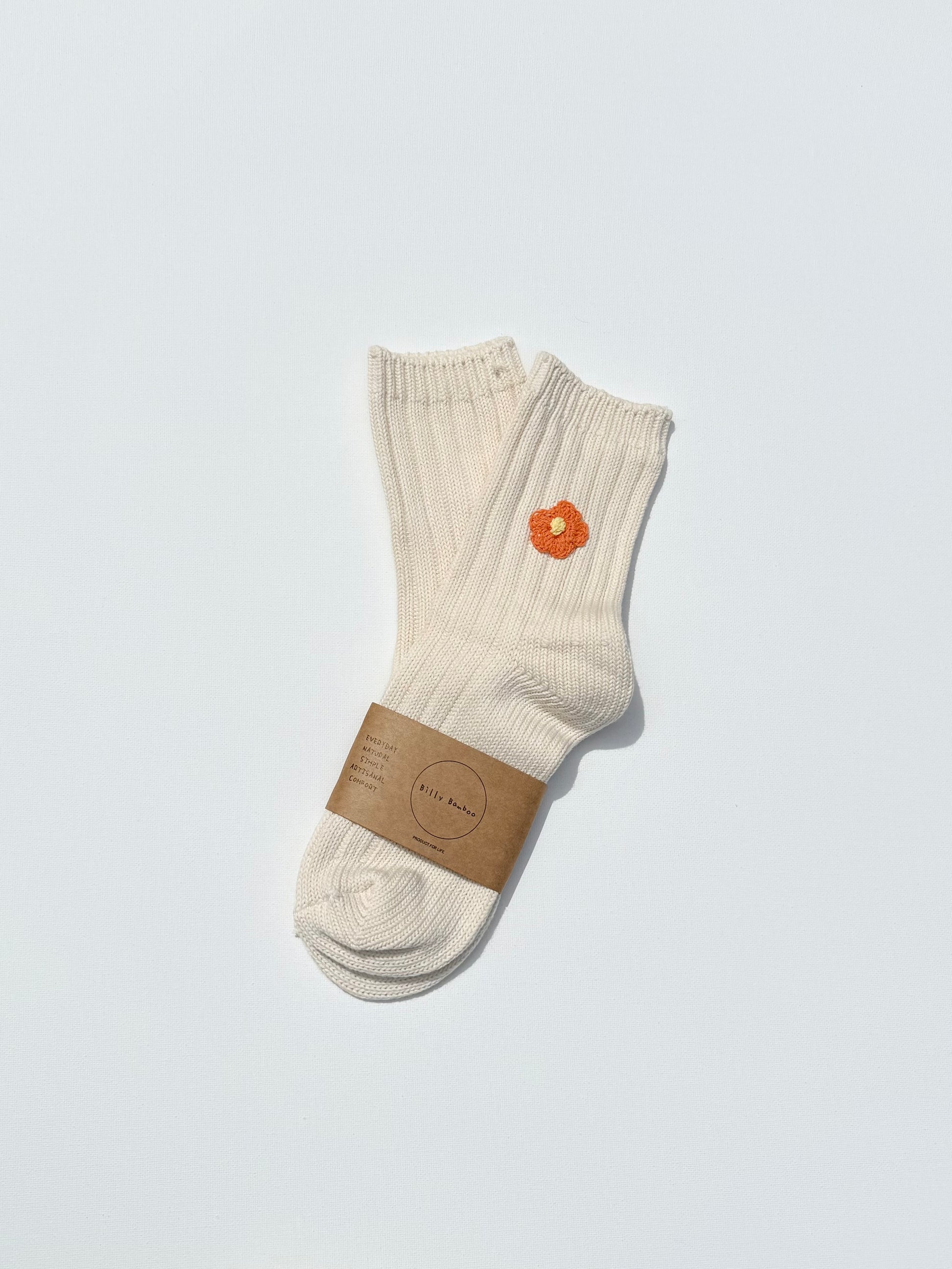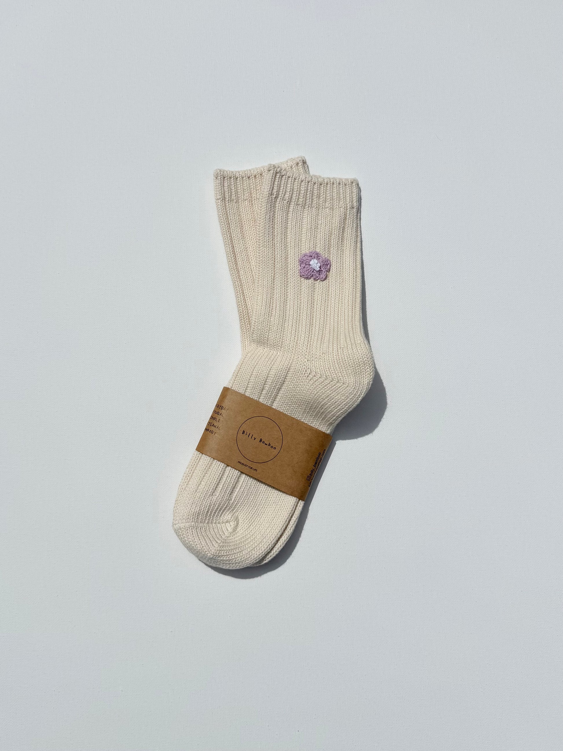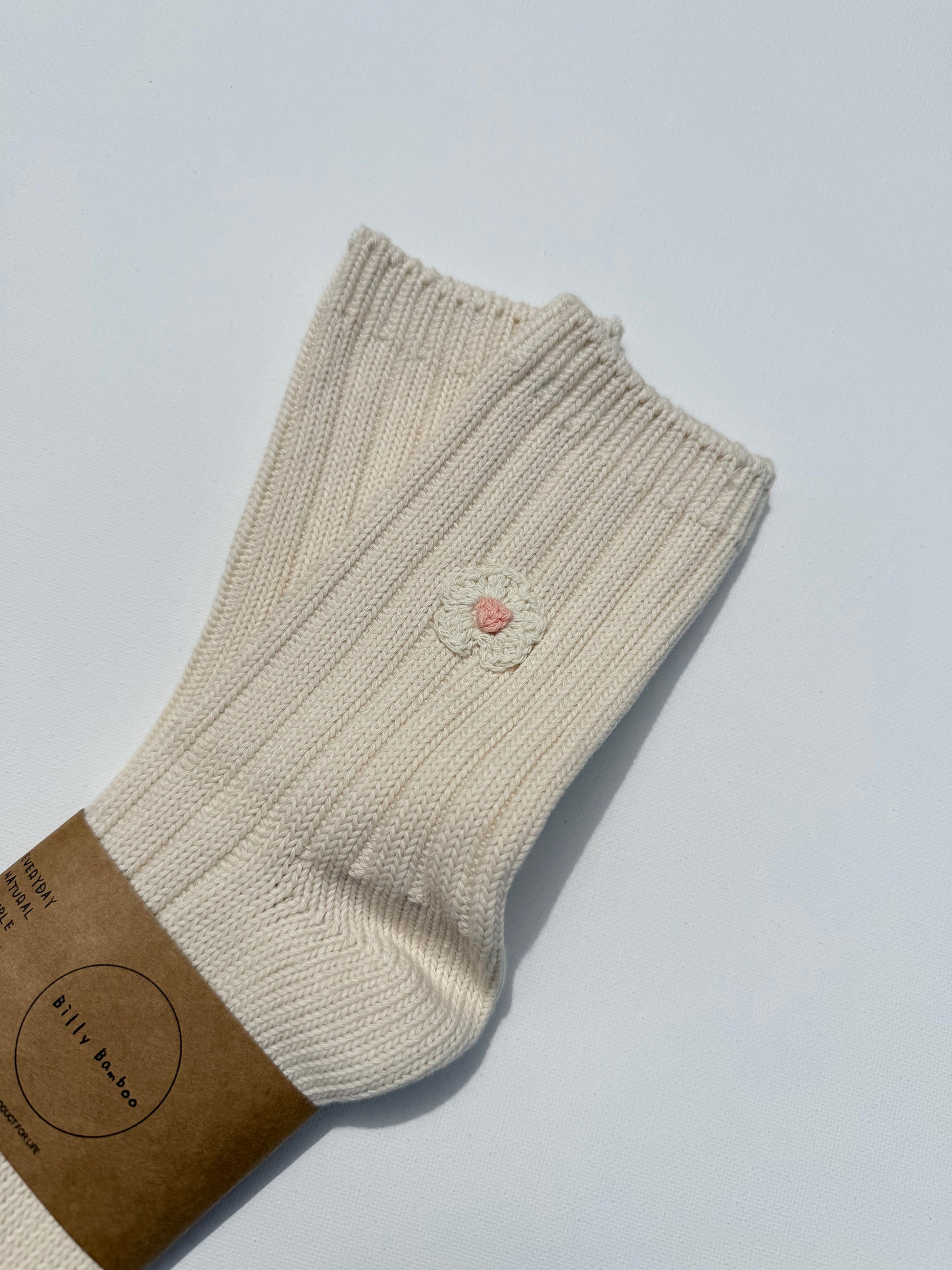 Built on our best-selling ribbed organic cotton blend, these limited-edition socks are finished with hand-appliquéd crochet flowers, each one carefully sewn in our Toronto studio. The result is a playful twist on a timeless silhouette: soft, stretchy, and made to last.