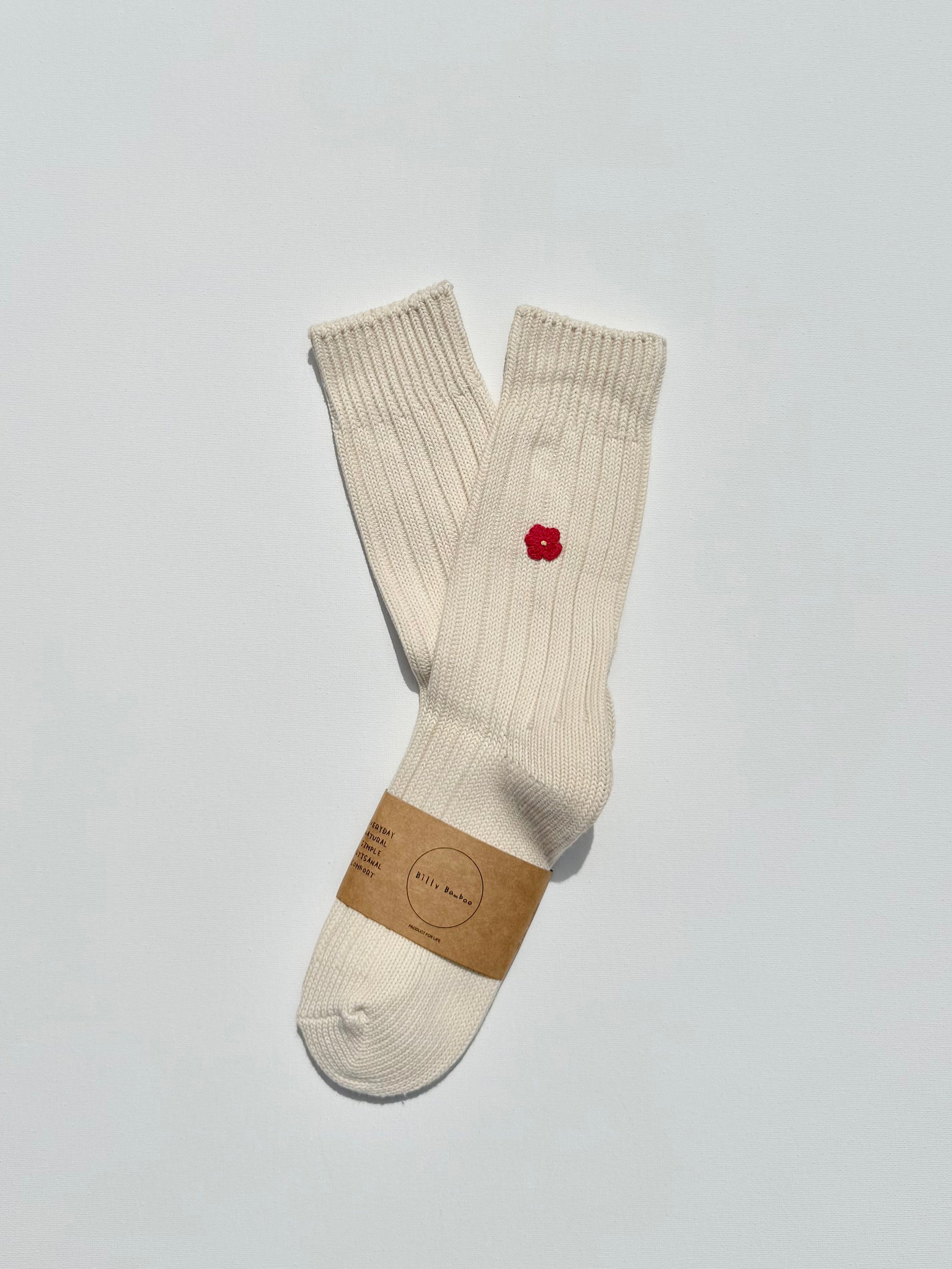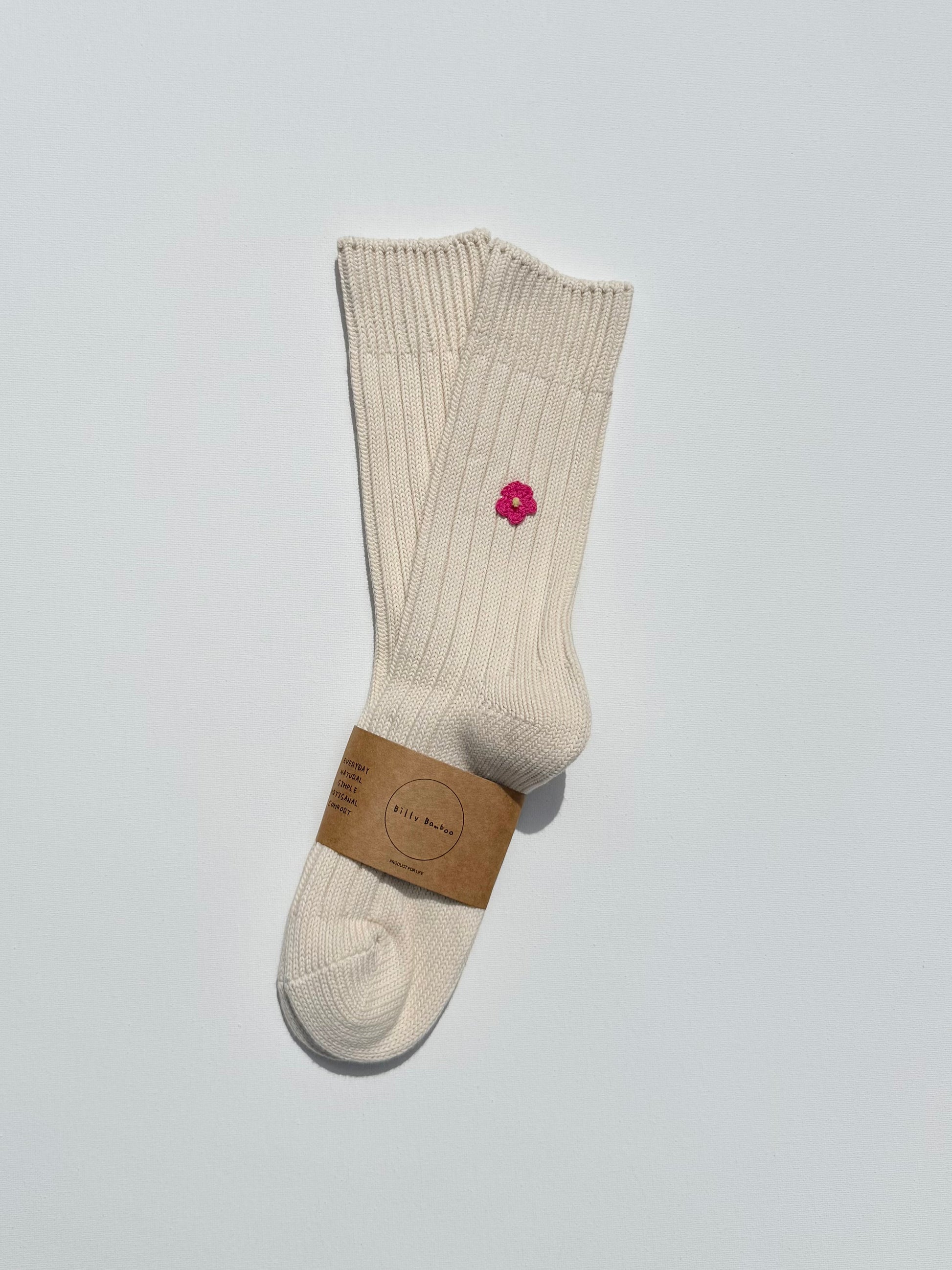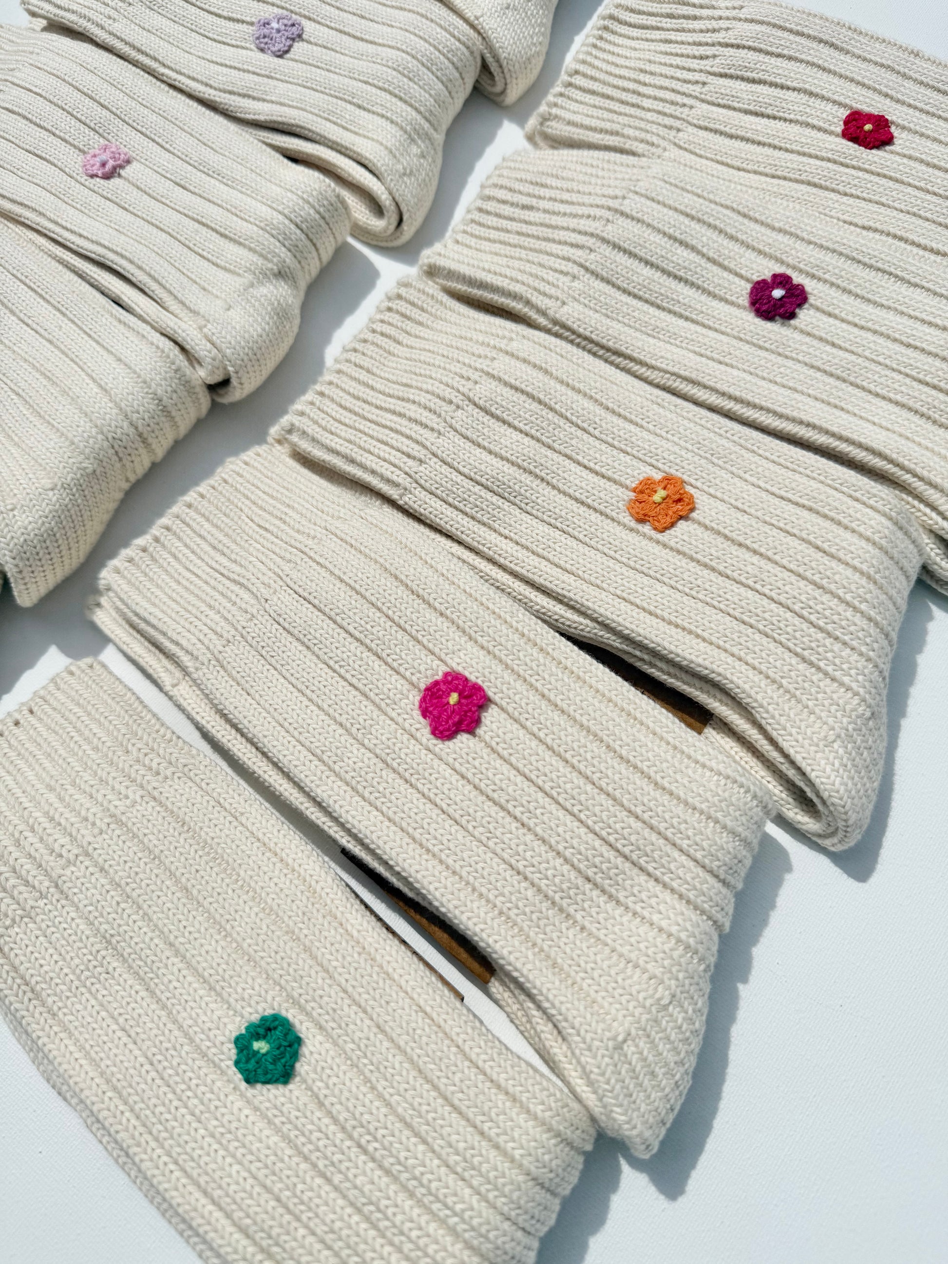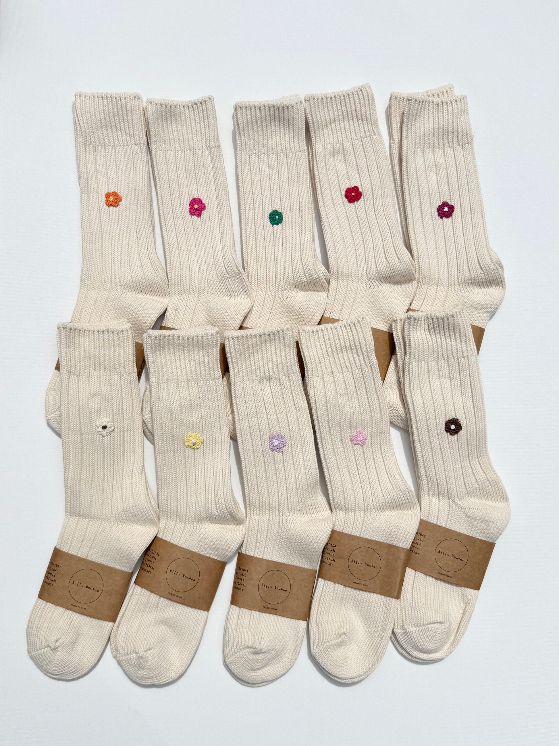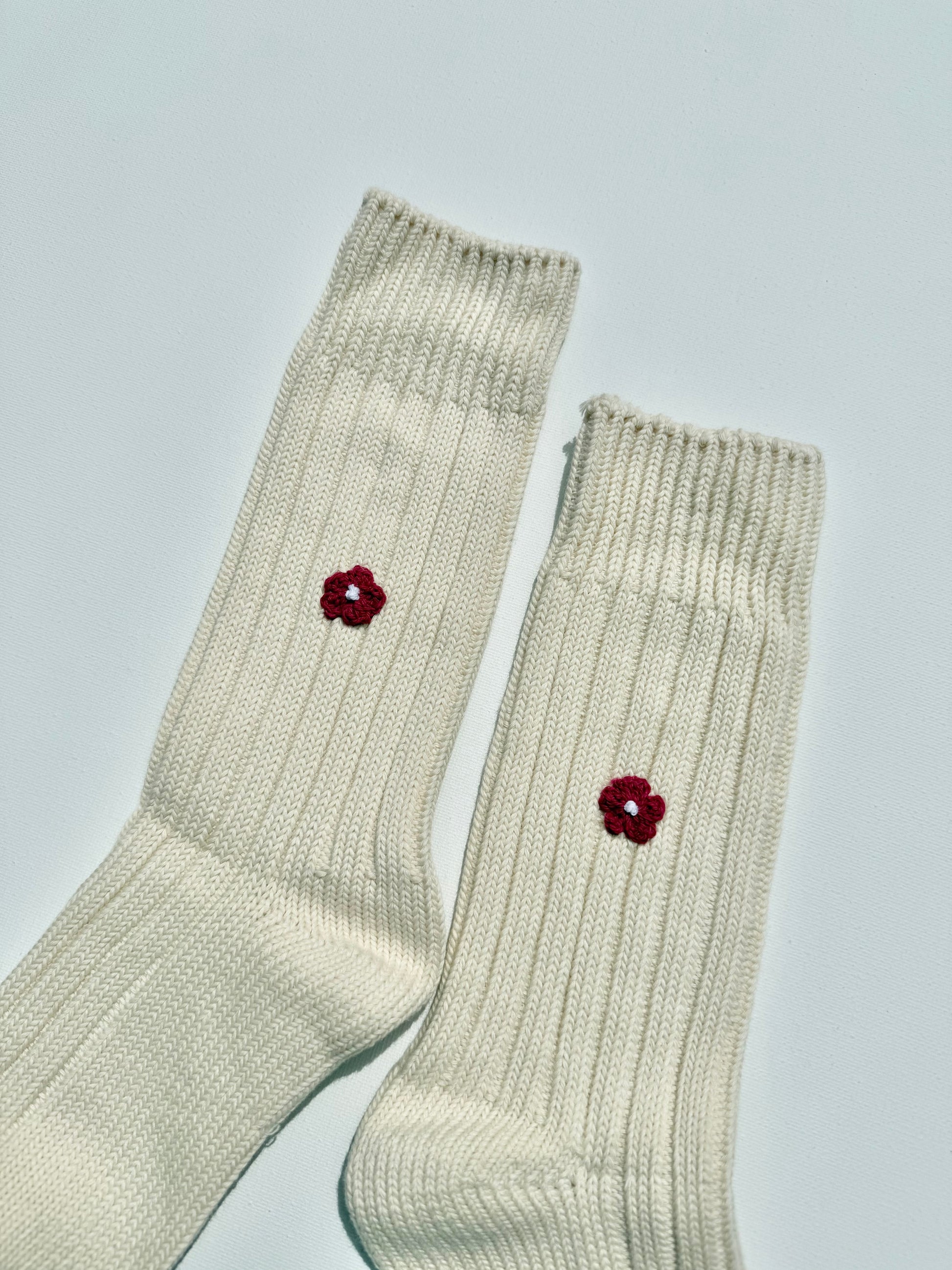 A modern classic with a handmade twist. Our Chunky Ribbed Cotton Socks are crafted from heavy-duty, undyed cotton for natural softness, durability, and all-season comfort. Each pair is finished with delicate crochet flowers, giving every step a touch of artistry and warmth.