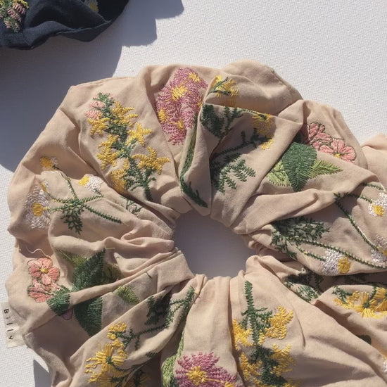 EMBROIDERED HERB SCRUNCHIES