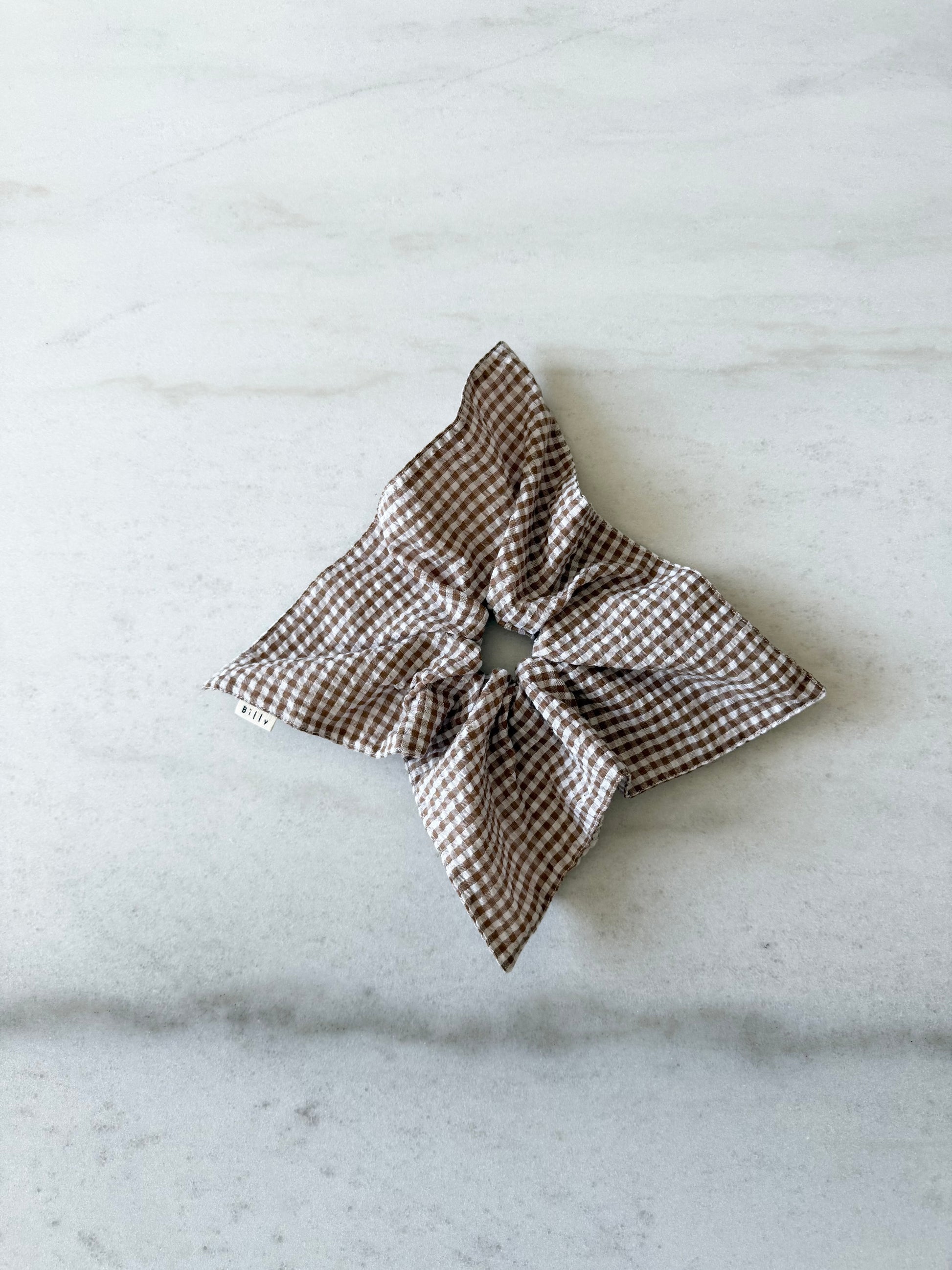 MINI GINGHAM PETAL SCRUNCHIES - neutral