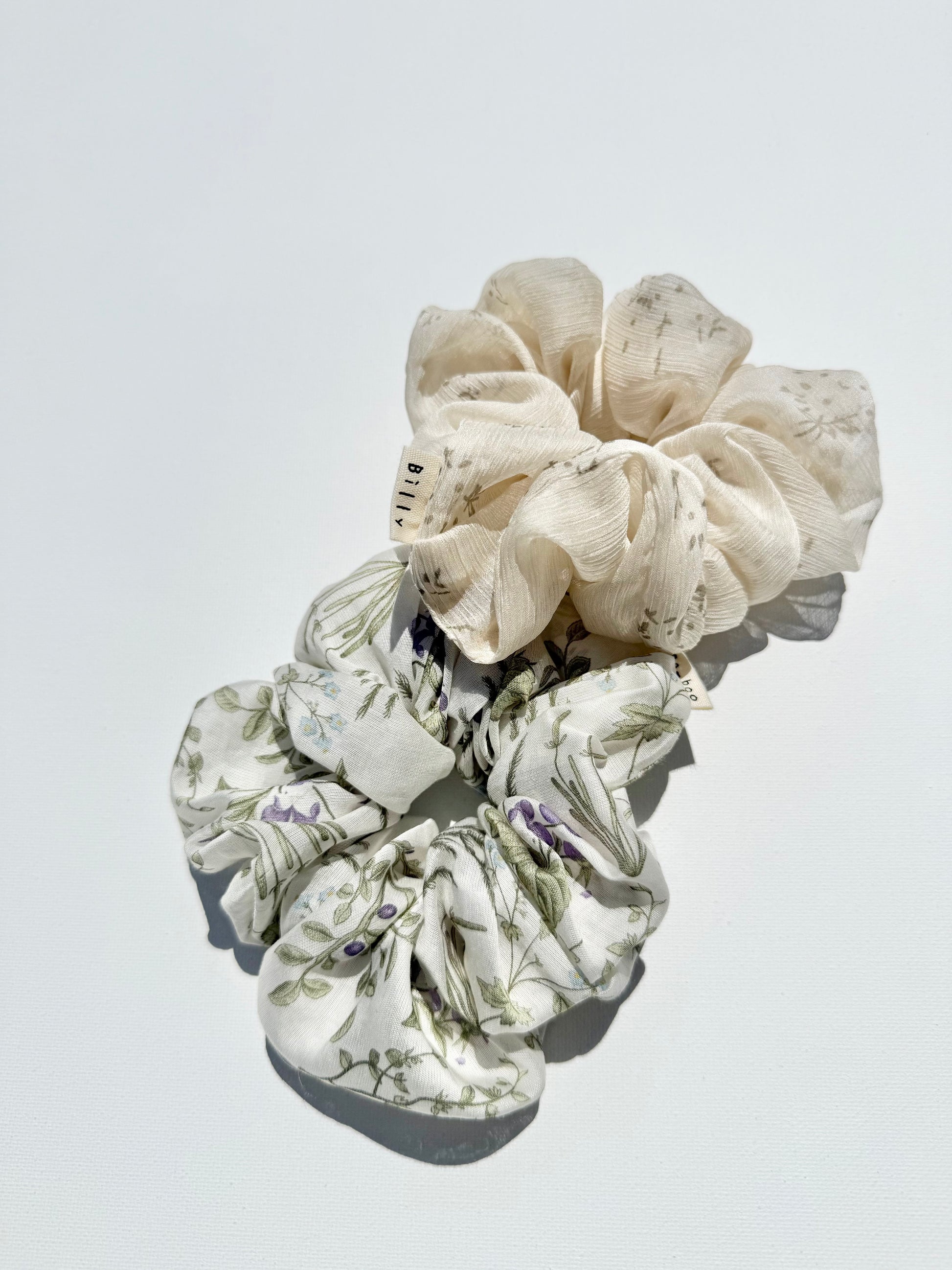 Delicate and dreamlike, our Organza Floral Scrunchies are handcrafted in Canada and inspired by nature’s quiet poetry. Each piece is made in small batches, featuring preserved dandelion and vine flowers encased in airy organza — a whisper of beauty for everyday wear.