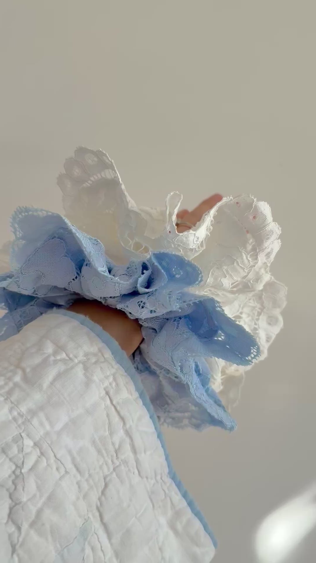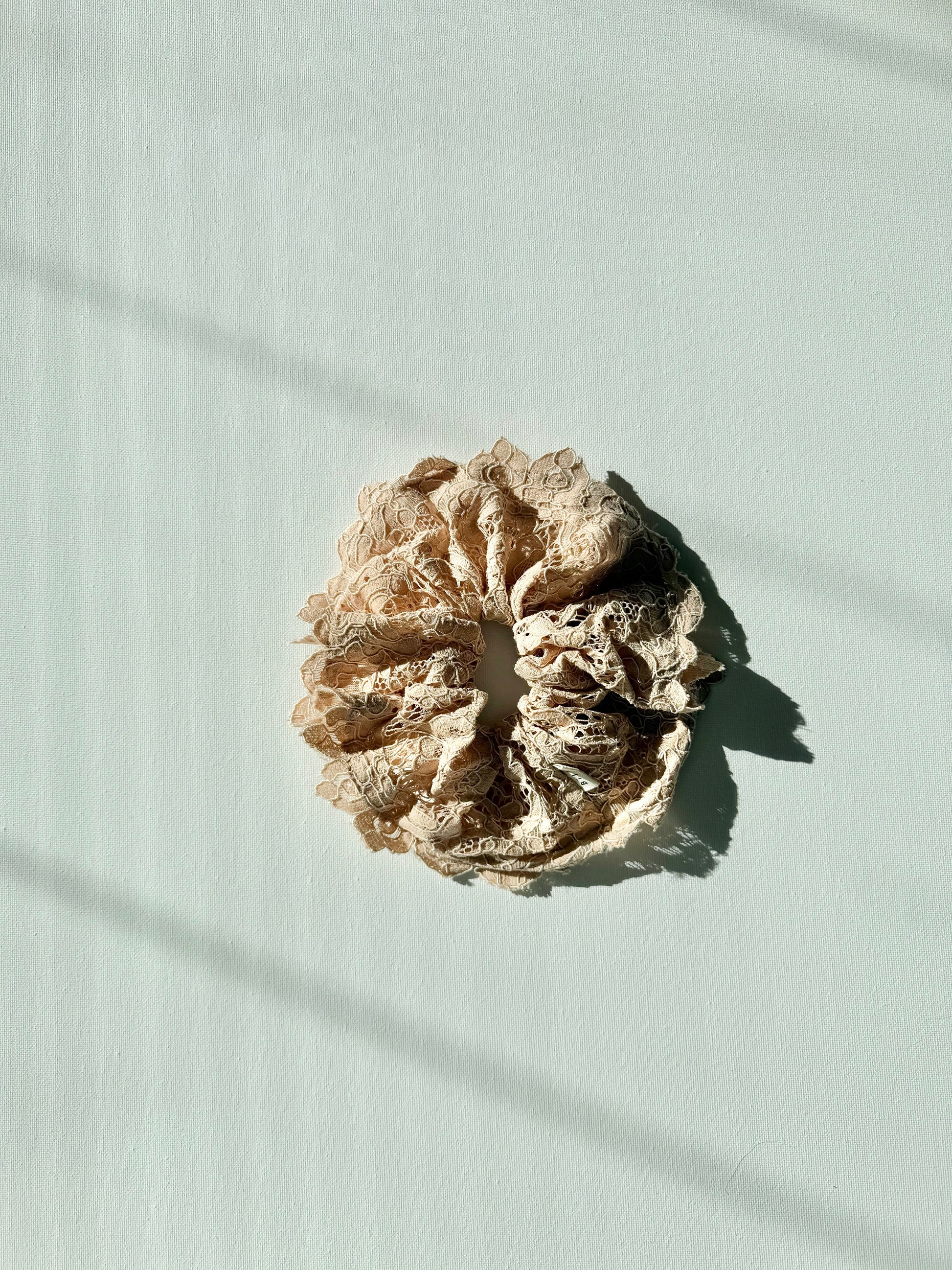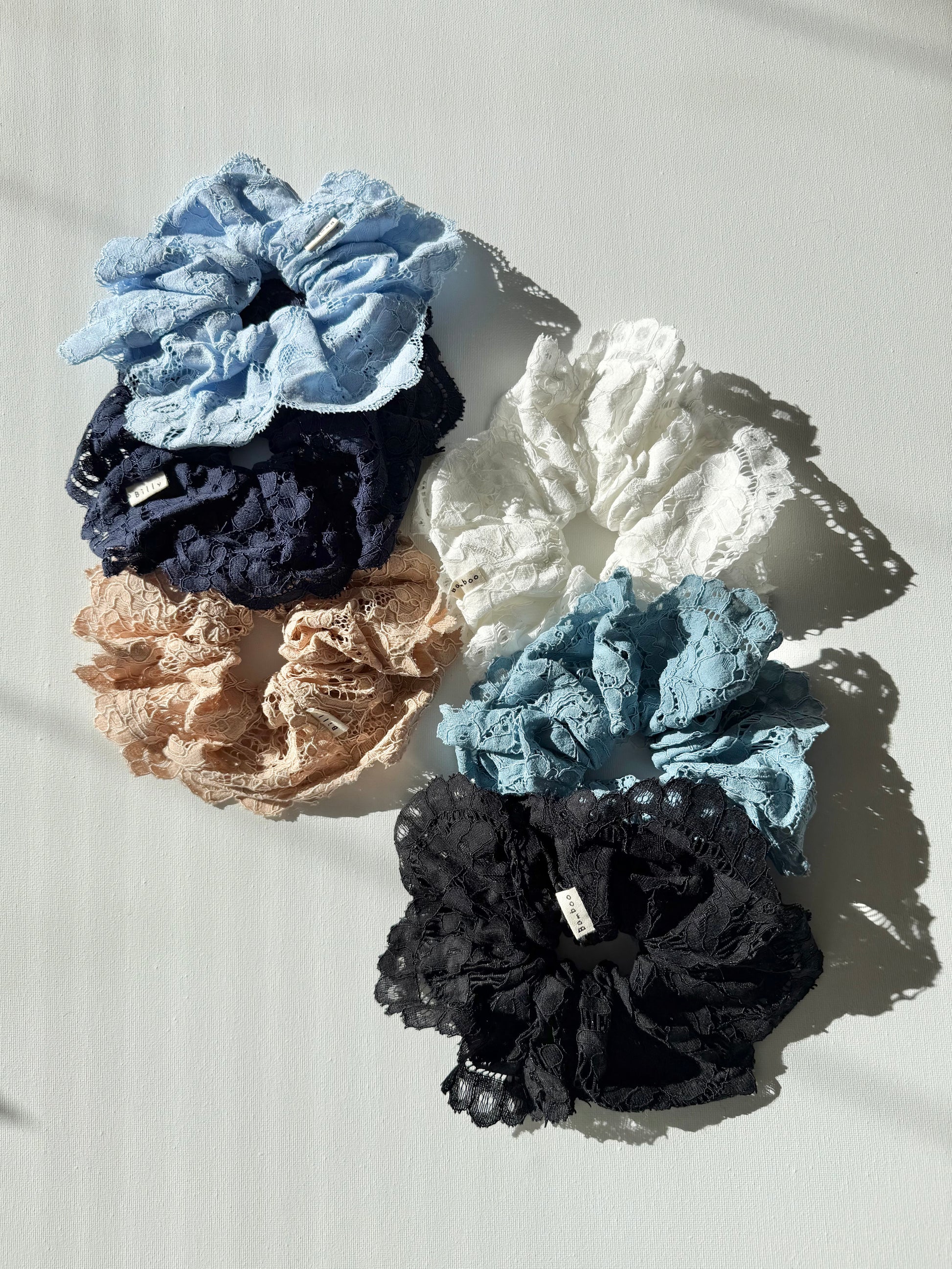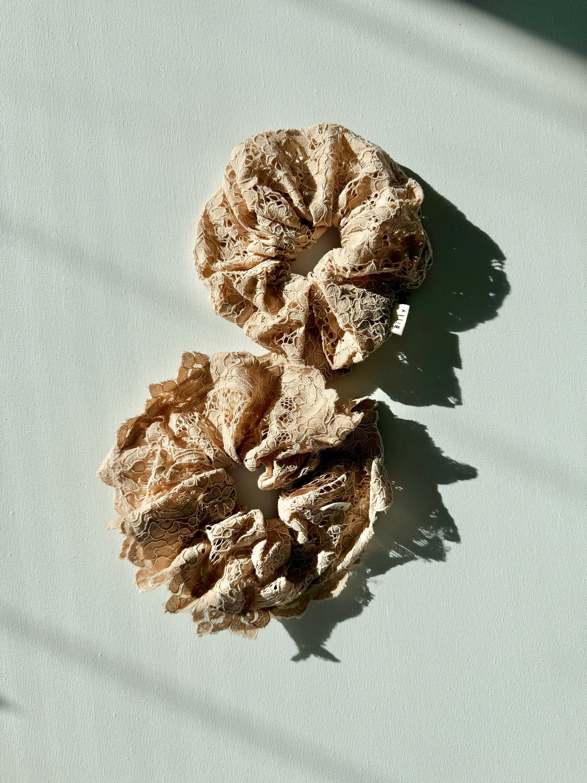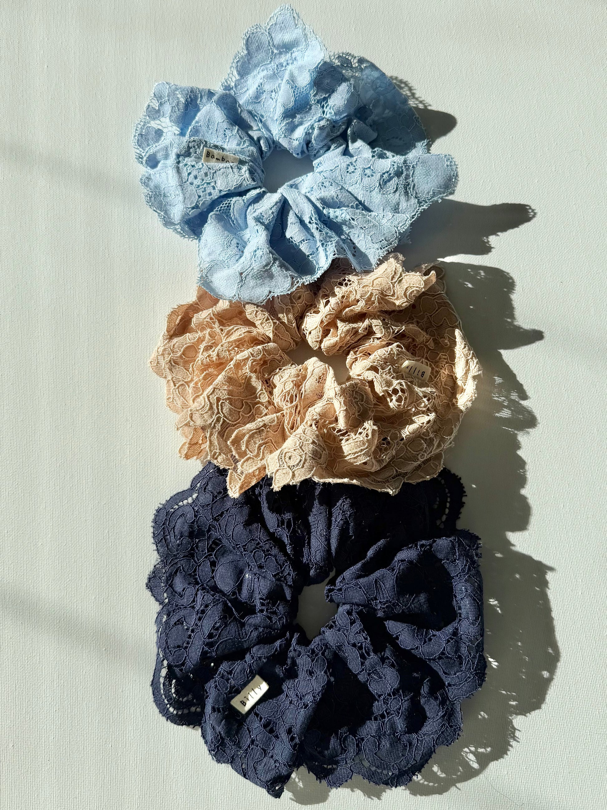 • Our lace scrunchies are made in small, limited runs using dead stock fabrics.