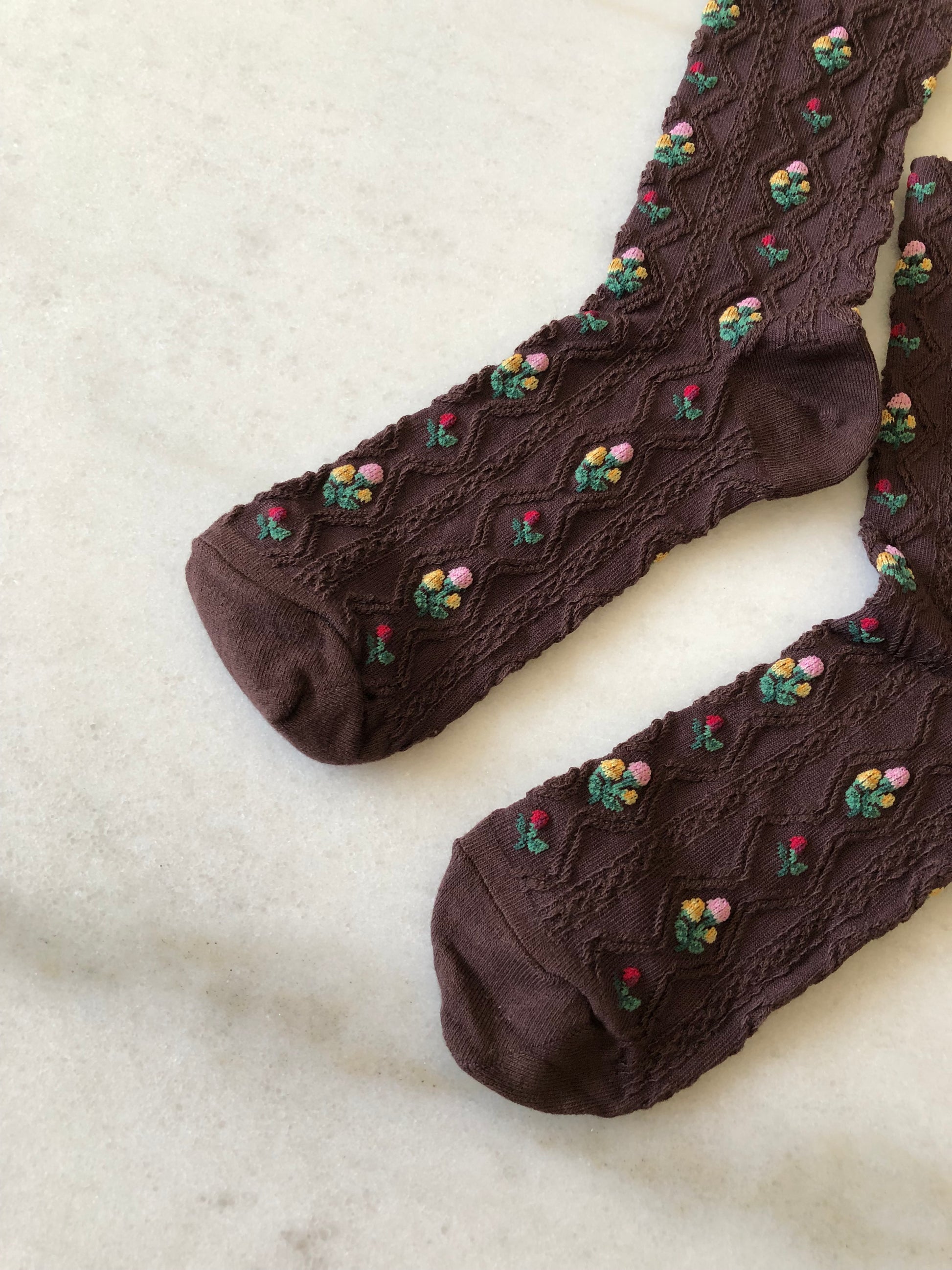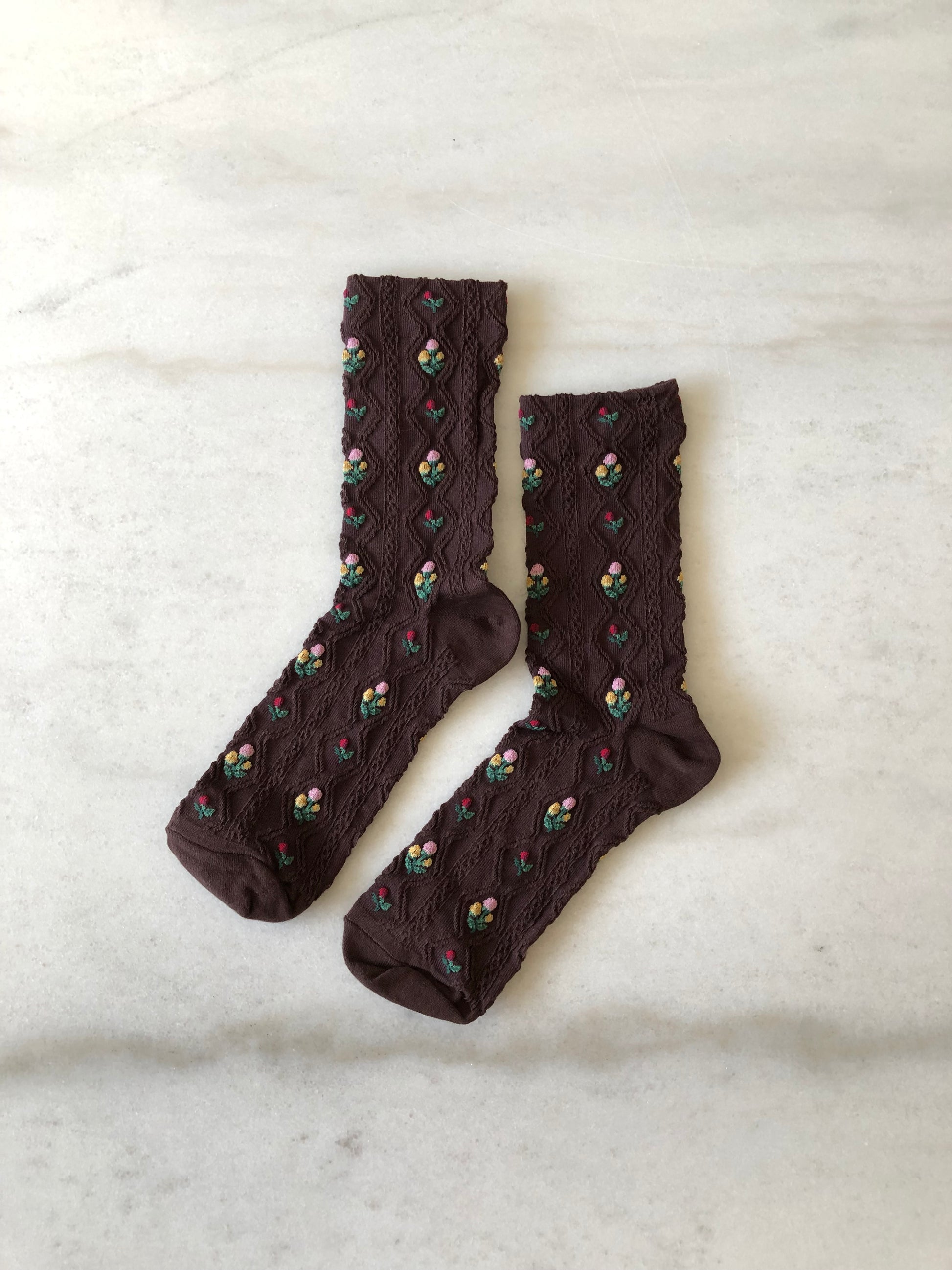 Knitted on a jacquard machine for beautifully detailed floral patterns, our Rose Garden Socks bring a playful, romantic touch to any outfit. Crafted from a soft, breathable cotton blend with a hint of stretch, they hold their shape and comfort through every season — elegant, versatile, and effortlessly wearable.