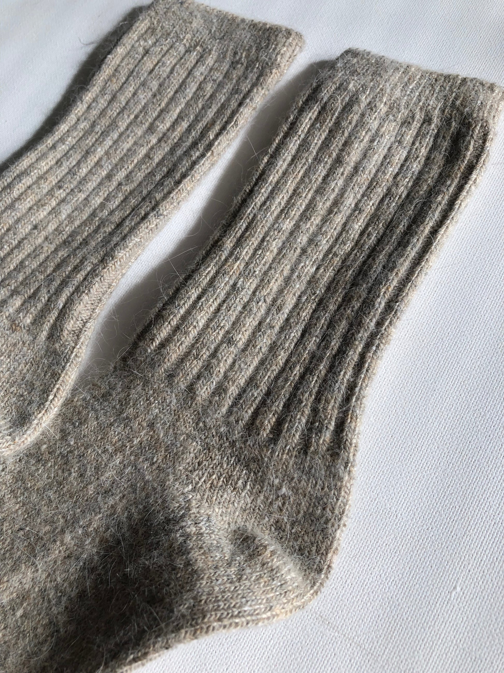 Knit from our signature angora-rich blend, the fibres create that beautiful, subtle “fluffy halo,” while the denser ribbed structure gives the sock a compact, cushioned feel. They’re still lightweight and refined, just warmer, cozier, and built for the depths of winter. Think fireside mornings, cottage weekends, après-ski lounging, and any time you want a softer, warmer escape.
