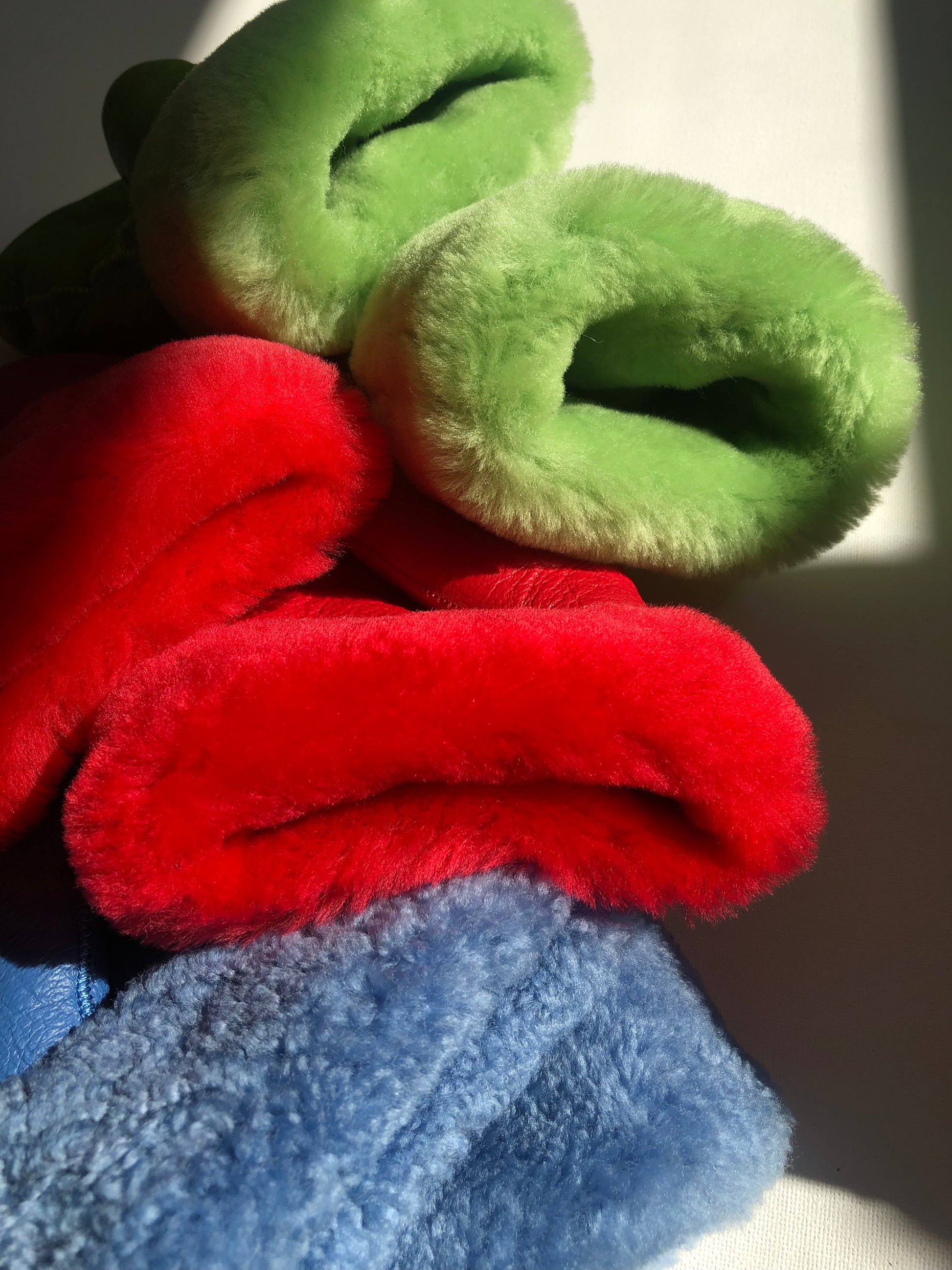 1 layer super soft and thick shearling, super warm and cozy inside, can fold the cuffs to make it shorter and shows more shearling.