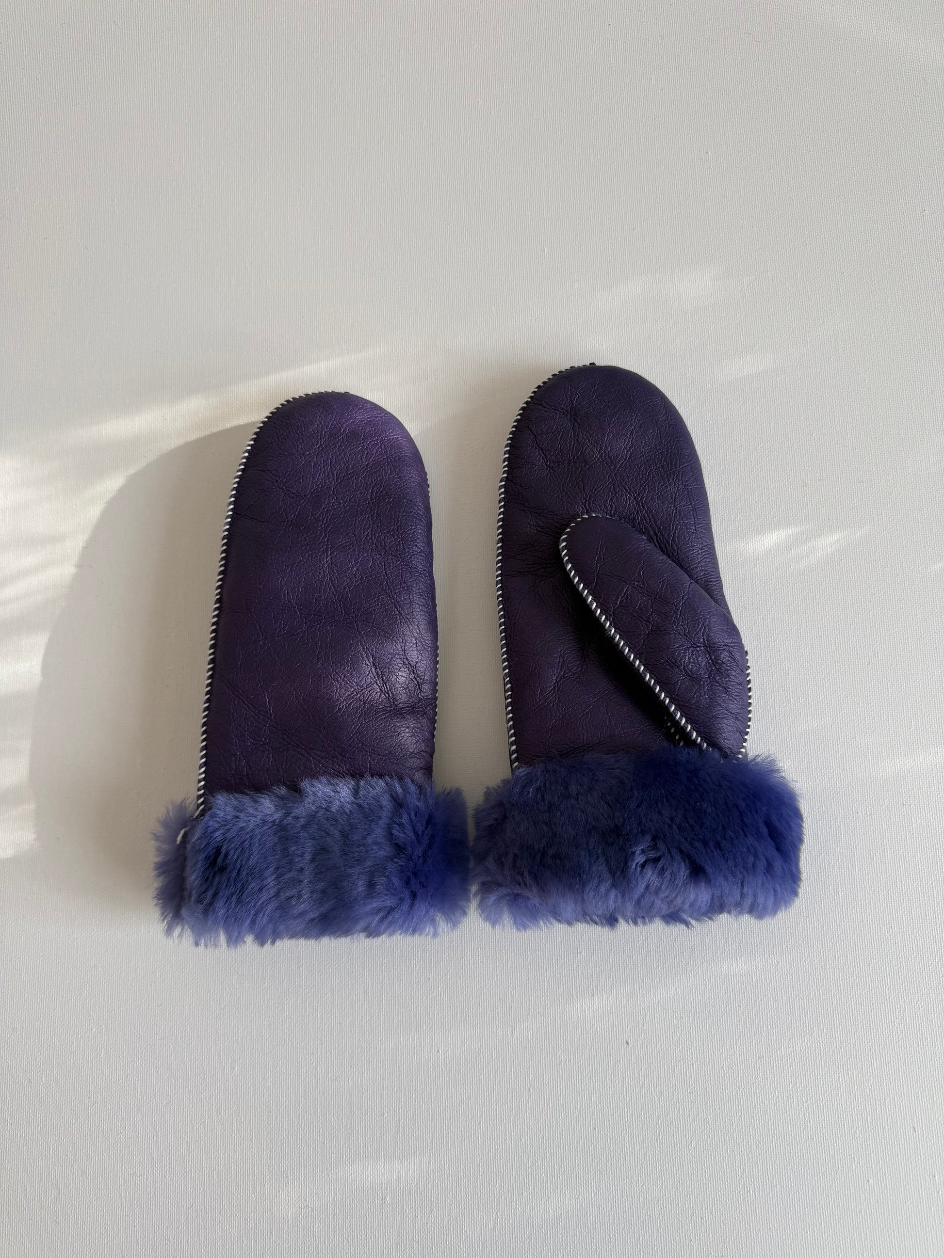 Luxurious high-pile shearling mitten, made from 100% genuine shearling leather with hand-finished stitching throughout. Offered in a soft blue, adding a splash of colour to your ensemble and helping to keep your hands super warm and cozy. The convertible cuff can be folded or unfolded depending on your styling preference.