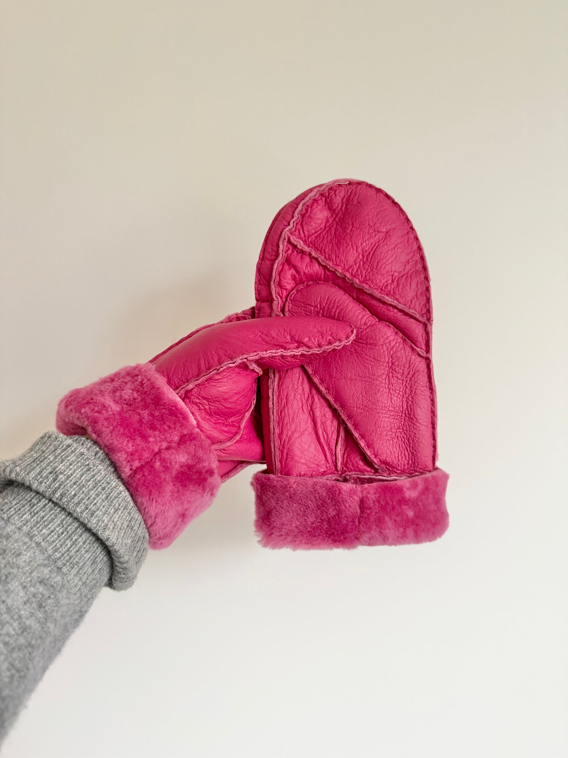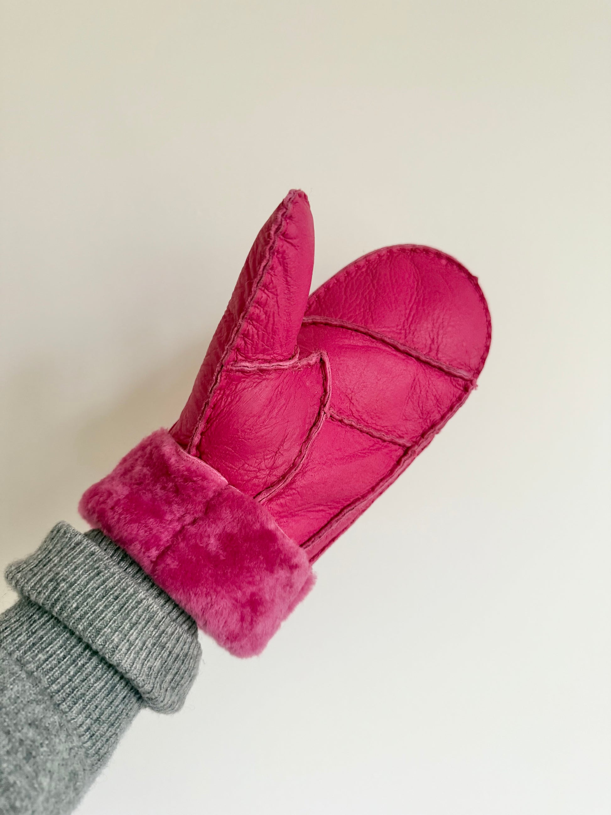 Luxurious high-pile shearling mitten, made from 100% genuine shearling leather with hand-finished stitching throughout. adding a splash of color to your ensemble and helping to keep your hands super warm and cozy. The convertible cuff can be folded or unfolded depending on your styling preference.