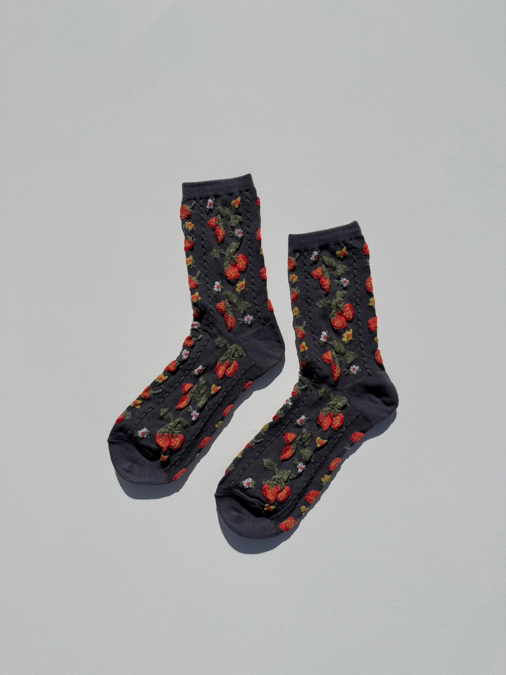Whether you're dressing up for a picnic, a countryside outing, or just adding a touch of strawberry cuteness to your wardrobe, these socks are a must-have. Fresh, fruity, and utterly adorable!