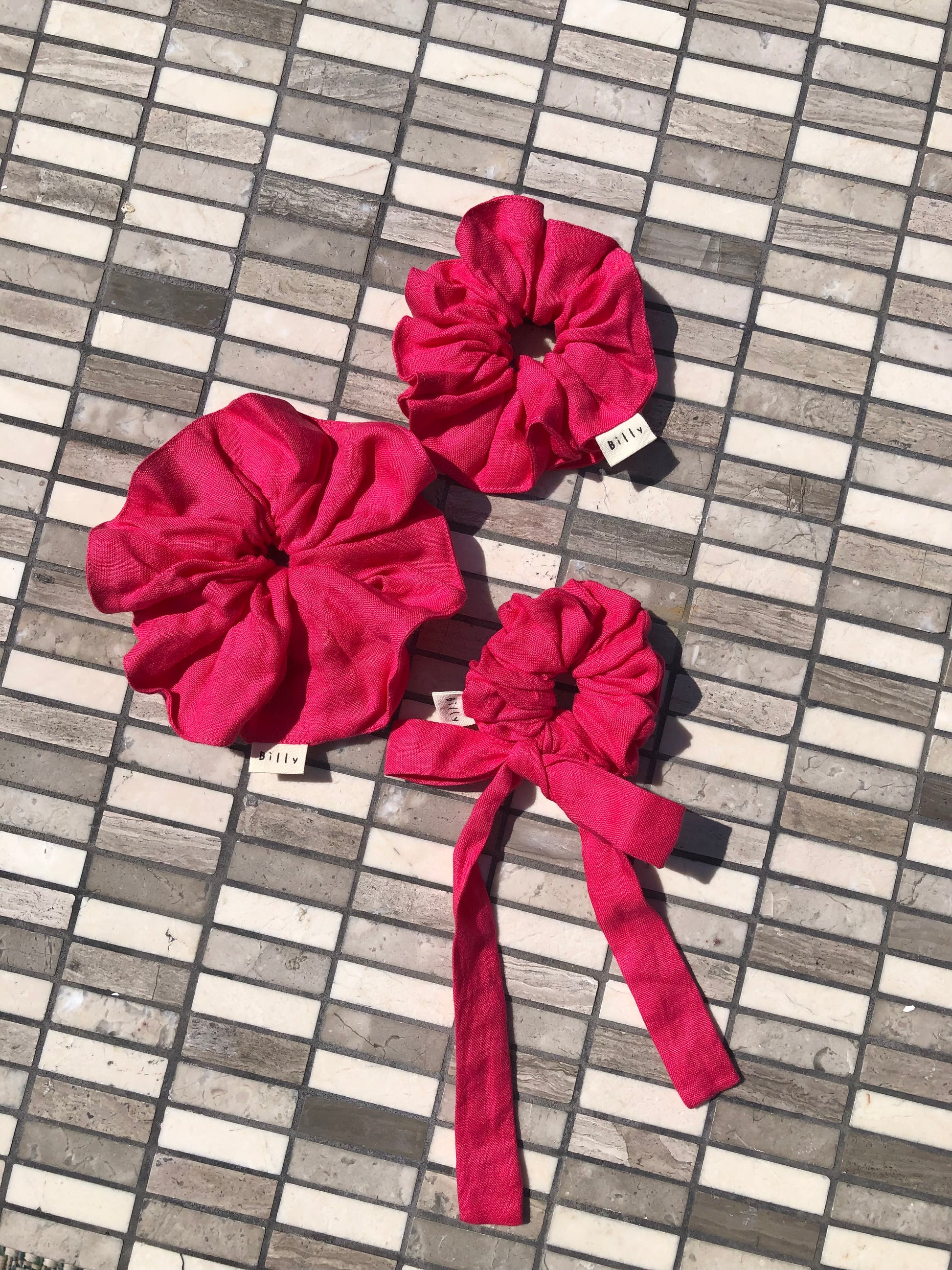 Our 100% Linen scrunchies are made in small, limited runs using dead stock fabrics. The linen itself has been pre-washed using a sand wash technique to achieve a unique and unexpectedly soft hand feel.