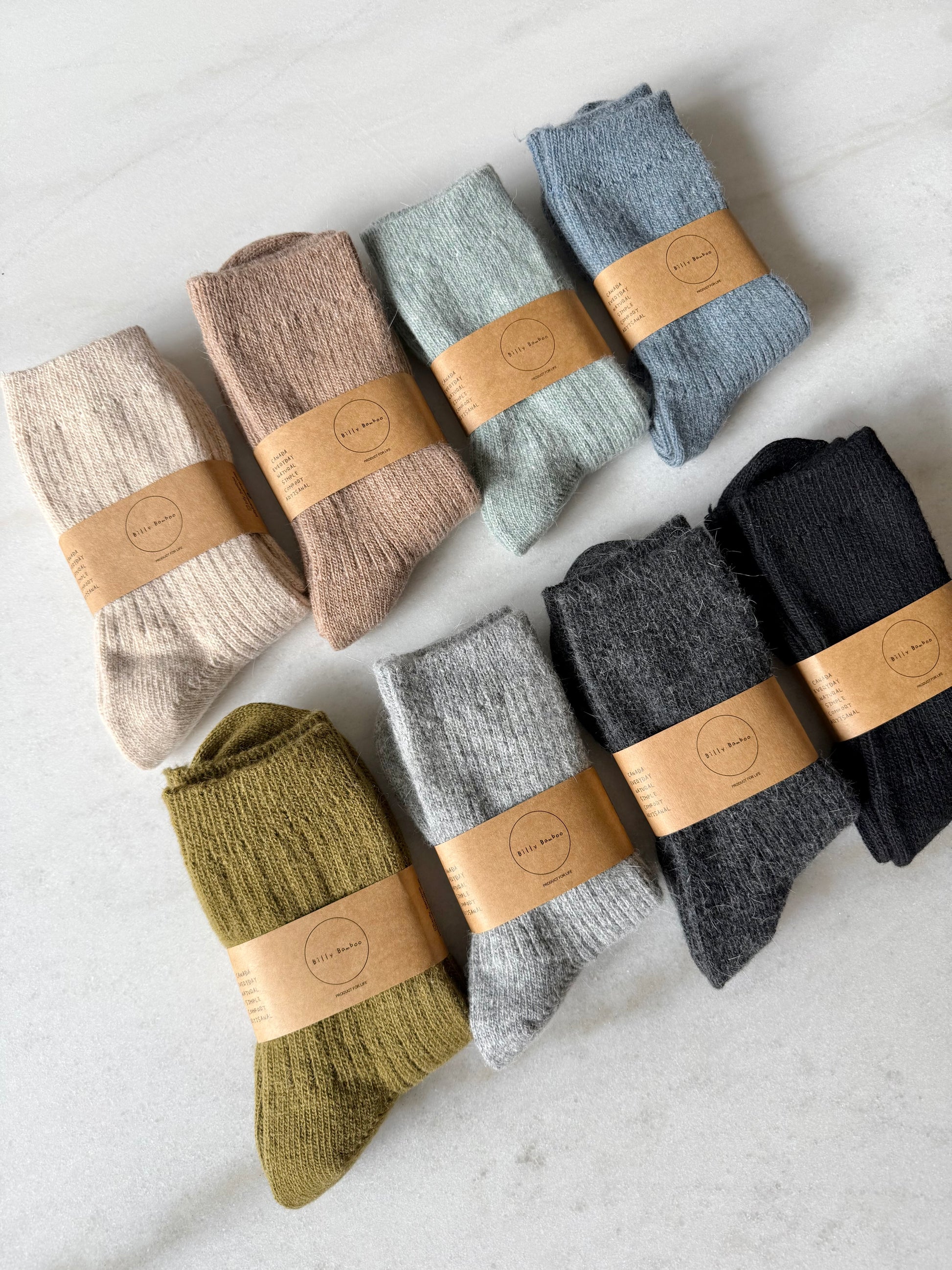 Those cozy wool socks are using the high percentage wool blended thread, make a steady piece with natural wool hand feel, great for the cold weather.